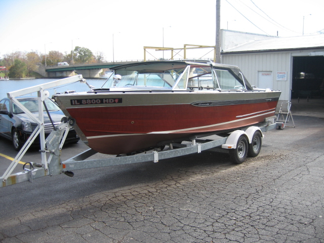 Gray Marine. Great looking boat, very presentable and reliable, runs great. This Coronado is the 20th built of the new model that ran through 1968. The following work was done in 2009-2010: boat was dismantled, only hull and motor remained intact. Framing was re-tightened, scraped clean and repainted. New floor was installed, painted, then covered with nautilex vinyl. New windshield and side glass replaced, new exhaust, 95% of all chrome was re-plated. Comes with trailer, it's ready to go. Price has been reduice .sell is motivated .